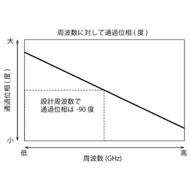 図2の理想的な等価回路からなるインピーダンス変換器が負荷側に見せる通過位相特性を示す図。