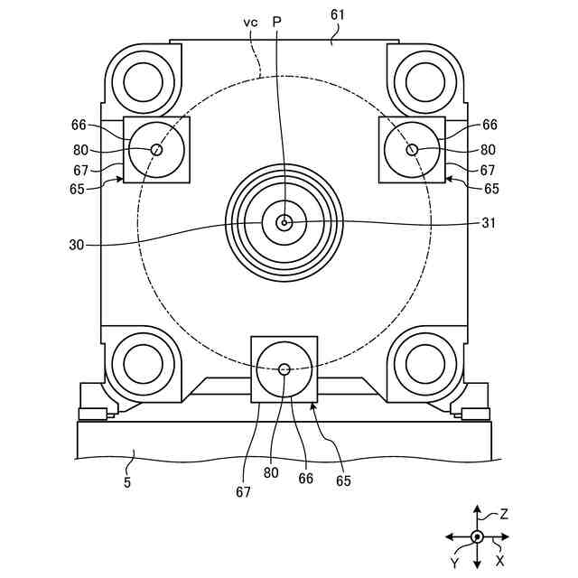 ここで、ノズルタッチ機構のノズルタッチ用のロッドは、射出シリンダが水平方向に延びる形態の射出成形機においても配置することがある。この場合、射出成形機に配置する複数のノズルタッチ用のロッドは、金型が取り付けられる固定ダイに対してロッドからの力が均等に作用するように、射出シリンダの延在方向に見た場合におけるノズルを中心とする同一円周上の均等の位置に、射出装置と固定ダイとの間に亘ってロッドは配置される。