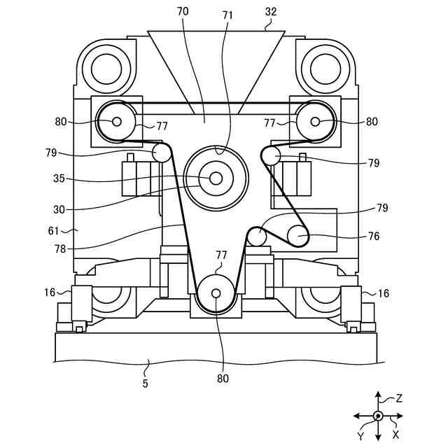 複数の前記プーリに掛け回され、前記駆動用電動機から駆動力を各前記プーリに伝達することにより前記プーリを回転させる伝動ベルトと、