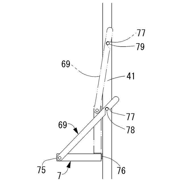 折り畳み可能に構成された作業床の使用時状態、及び、不使用時状態を示す図。