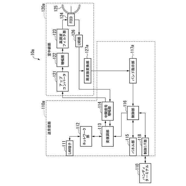従来、衛星通信では、通信に用いる衛星によって、Xバンド、Kaバンド、Kuバンドなどの使用するバンド、BPSK(Binary Phase Shift Keying)、QPSK(Quadrature Phase Shift Keying)などの変調方式、帯域幅が異なる。このため、地上局となる衛星通信装置は、通信に用いる衛星に応じた導波管、モデムなどを備えている。