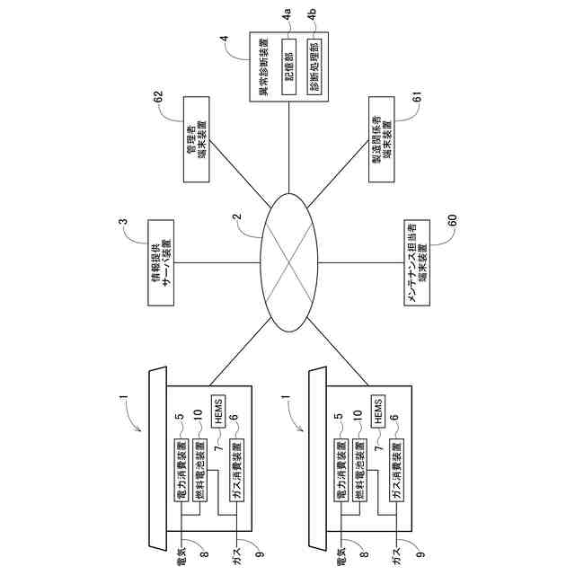 上記目的を達成するための本発明に係る異常診断装置の特徴構成は、施設に設置される燃料電池装置から情報通信回線を介して受信した情報に基づいて前記燃料電池装置で発生する異常の内容を診断する異常診断装置であって、