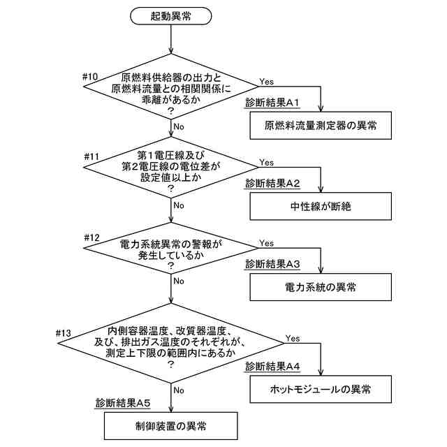 上記目的を達成するための本発明に係る異常診断装置の特徴構成は、施設に設置される燃料電池装置から情報通信回線を介して受信した情報に基づいて前記燃料電池装置で発生する異常の内容を診断する異常診断装置であって、
