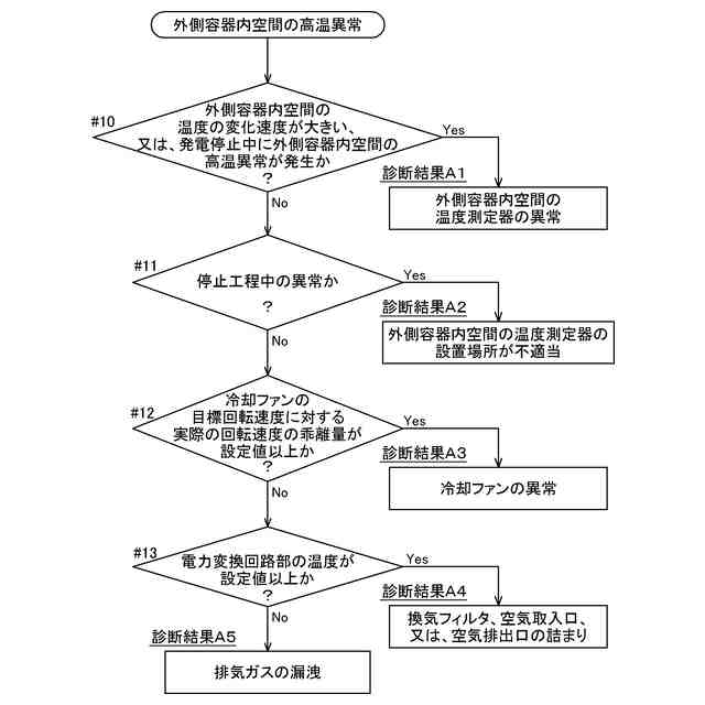 【解決手段】異常診断装置が、空間温度測定器が測定する外側容器内空間の温度が所定の高温状態であるという第1判定条件が満たされ、且つ、空間温度測定器が測定する外側容器内空間の温度の変化速度が設定値以上である、或いは、発電停止中に第1判定条件が満たされたという第2判定条件が満たされる場合、空間温度測定器の異常が発生していると判定する。