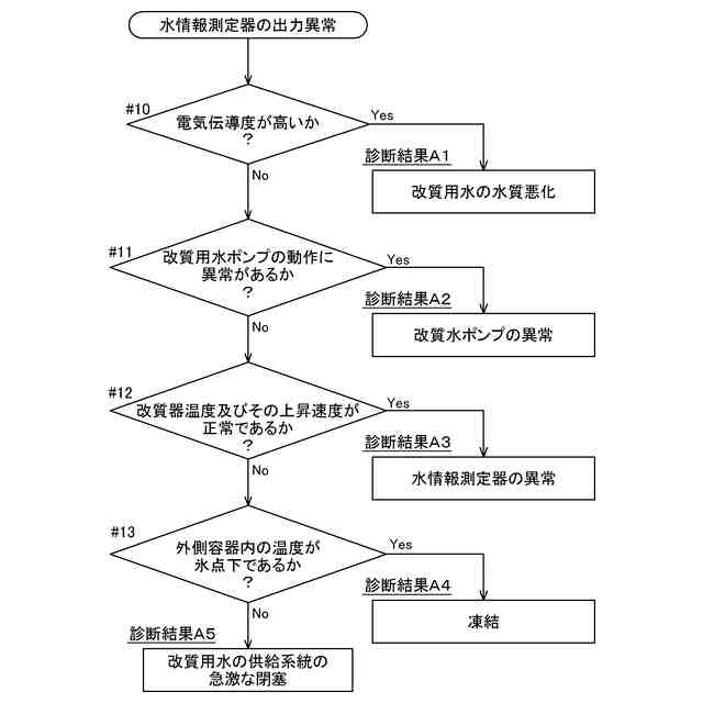 【解決手段】異常診断装置が、水情報測定器によって改質用水の電気伝導度が所定の高伝導度状態であることが測定されているという第1判定条件が満たされ、且つ、水情報測定器で測定される電気伝導度が改質用水の水質悪化の指標となる所定の閾値以上であるという第2判定条件が満たされる場合、改質用水の水質悪化が発生していると判定する。