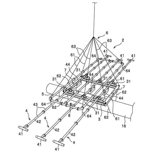 前記吊枠は、前記梁材が前記ブレードと直交する向きになるように、前記ブレードを吊下しており、