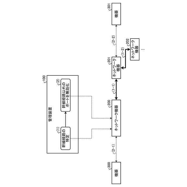 図2は、本実施形態に係る管理装置による幹線経路の特定処理およびポート無効化処理の概要を説明する図である。