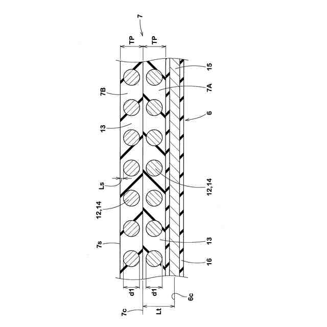 前記各ベルトプライの厚さTPは、0.65~0.85(mm)であり、