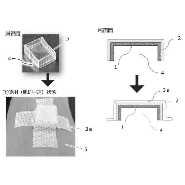 前記固定手段3が、粘着もしくは結着により、支持体2を肌の任意の部位に固定することを特徴とする、