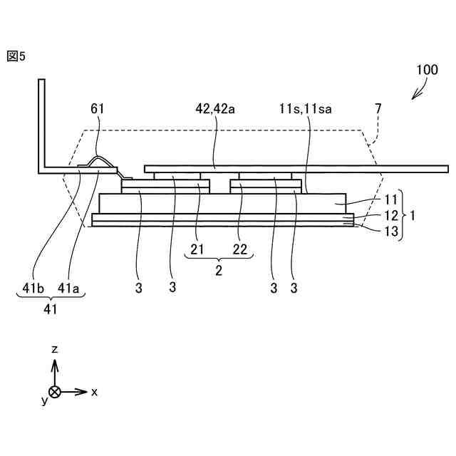 前記基材の上に配置されている半導体素子と、