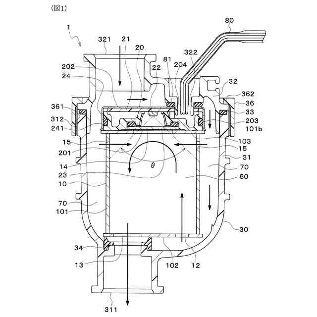 前記筐体は、前記流体が前記筐体供給口から前記室流入口へと流れるように構成されており、