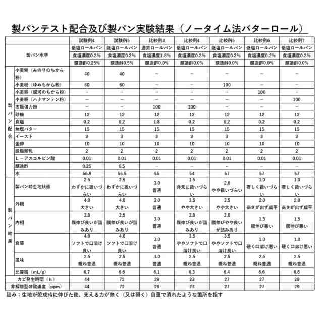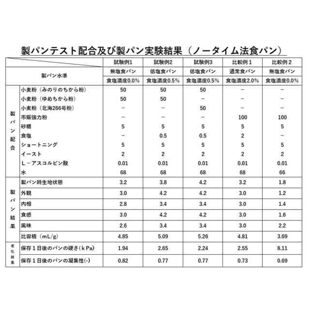 特許文献3には、グルテニンサブユニットの遺伝子型がグルテンの網目構造を密にする Glu-D1dを持ち、かつ網目構造の量を増やすGlu-B3b、Glu-B3g及びGlu-B3abの少なくともいずれかを持ち、Wx-B1が欠損した小麦品種の小麦を製粉したベース小麦粉と、ベース小麦粉とグルテニンサブユニットの遺伝子型が異なる穀物粉とを用いて製造されたブレンド粉を用いて無・低塩素材用パンの製造方法が開示されている。