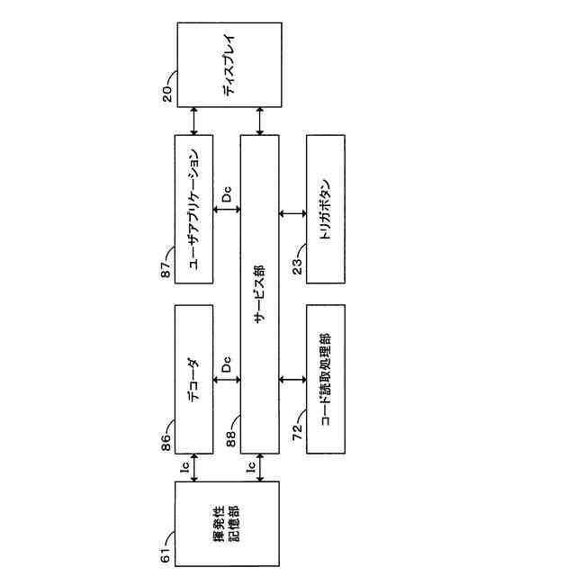 【解決手段】携帯情報端末において、ユーザアプリケーション87は、サービス部88から受け取ったデコード処理の結果である読取データDcに基づいて、読取データDcのユーザアプリケーション87への登録要否を判定して、登録要否の判定結果をサービス部88に送信する。そして、サービス部88は、ユーザアプリケーション87から受信した判定結果を示すマークをコード画像に重ねて示すイメージビューウィンドウをディスプレイ20に表示させる。