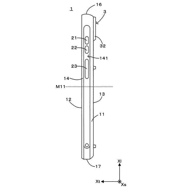 図1Aの携帯情報端末の外観構成を示す側面図。