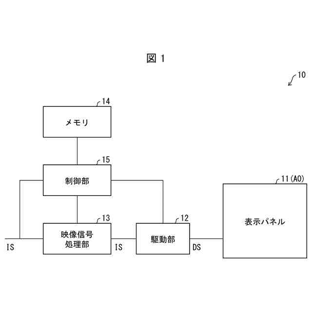 表示装置10は、表示パネル11、駆動部12、映像信号処理部13、メモリ14、及び制御部15を有する。