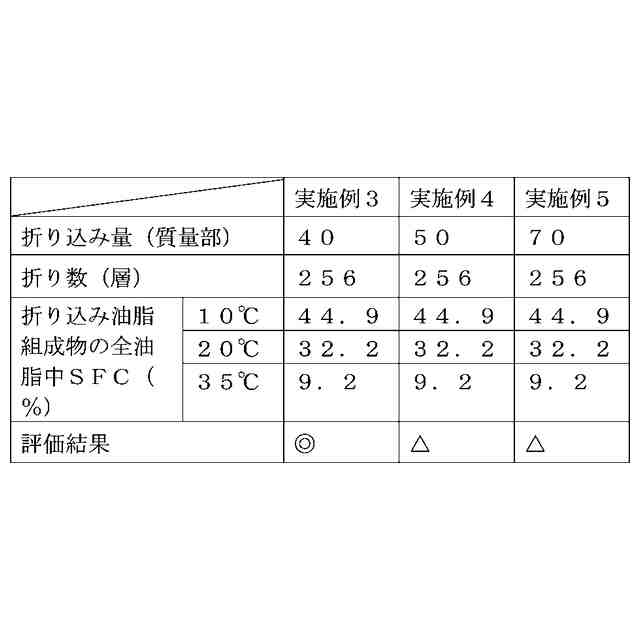 本発明者らは、上記課題を解決すべく鋭意研究を行った。その結果、焼成前の生地への折り込み油脂組成物の折り込み量及び折り数を特定範囲とすることにより、本課題が解決できることが見いだされた。これにより、本発明が完成するに至った。