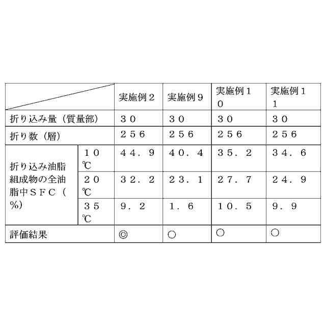 本発明の第9の発明は、前記折り込み油脂組成物に含まれる全油脂の10℃の固体脂含量が42~60%である第8の発明に記載の層状ベーカリー食品の電子レンジ加熱による食感劣化を抑制する方法である。