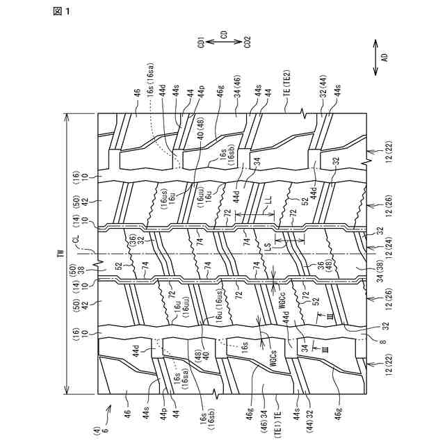 本発明において、タイヤを正規リムに組み、タイヤの内圧を正規内圧に調整し、このタイヤに荷重をかけていない状態は、正規状態と称される。