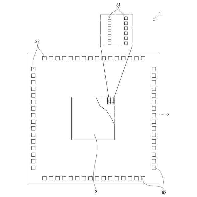 実施例1の多層配線基板の中間絶縁層を示す平面図である。