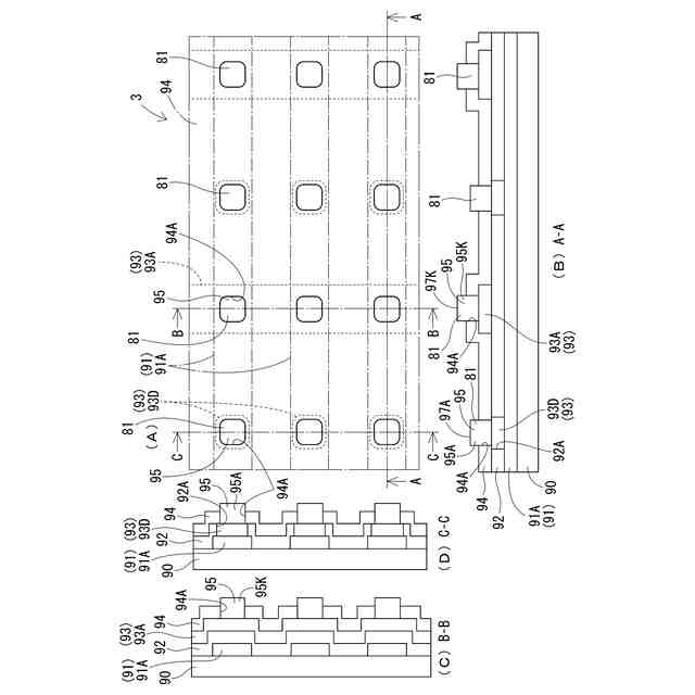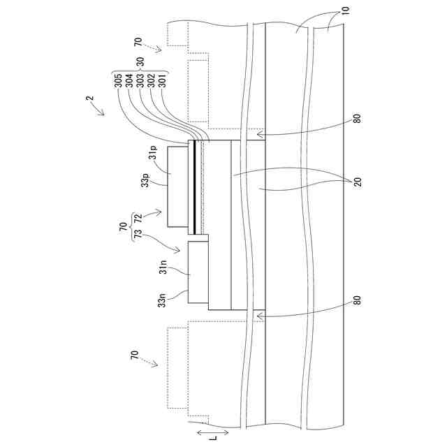 特許文献1のマイクロLEDパネルは、n側電極として機能する第1導電型メタル層の厚みをp側電極として機能する第2導電型メタル層よりも厚く形成して、第1導電型メタル層の実装面と、第2導電型メタル層の実装面(接合材料が接触する面)との高さを揃えている。このように各マイクロLEDの電極の高さを揃えることで、各LEDに確実に電力を供給することができる実装をしている。しかし、第1導電型メタル層を厚く形成するには、その分、材料や時間を要することになる。