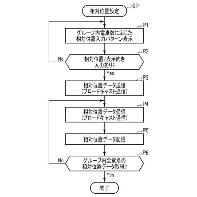 生徒電卓(関数電卓)10の処理に含まれる相対位置設定処理(ステップSP)の一例を示すフローチャートである。