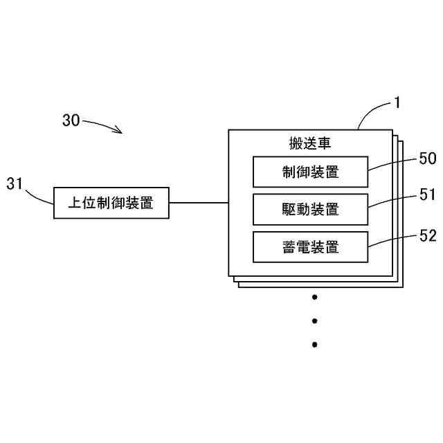 ところで、特許文献1には明記されていないが、搬送車の移動経路は、通常、搬送車を制御する制御システムによって探索されて設定される。搬送車が移動可能な経路である移動可能経路に、搬送車が外部から電力の供給を受けることができない区間のような、蓄電装置(特許文献1では、2次電池)に蓄えられた電力により搬送車の駆動装置(特許文献1では、走行モータ及び移載系モータ)を駆動する必要のある区間が含まれる場合には、目的地に到達するまでの間に搬送車が電力不足となり難い適切な移動経路を設定する必要がある。そして、このように搬送車の適切な移動経路を設定するための制御システムの処理負荷は、当然ながら低く抑えられることが望ましい。しかしながら、特許文献1にはこの点についての記載はない。