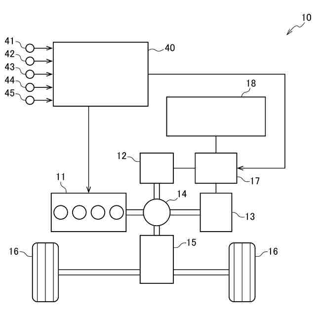 図1に示されるように、ハイブリッド車両10にはその動力源としてのエンジン11と2つのモータとが設けられている。以下では、これらモータのうち、主として発電に使用されるものをジェネレータ12と記載し、主として動力の発生に使用されるものをモータ13と記載する。