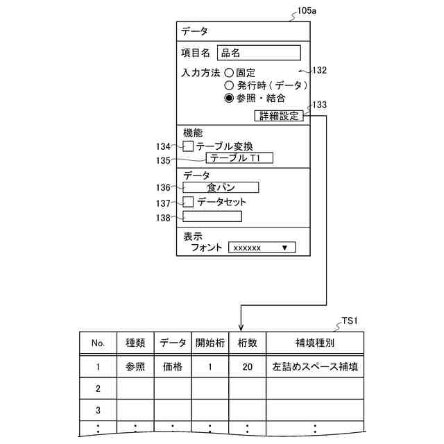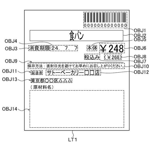 従来から小売店等では、販売される商品に貼付されるラベルを発行するラベルプリンタが利用されテールラベルに印字される項目のレイアウトをラベルの貼付対象となる商品ごとにデザインする必要があることから、ラベルプリンタにより印字されるラベルのレイアウトをデザインすることを可能とするプログラムが知られている。