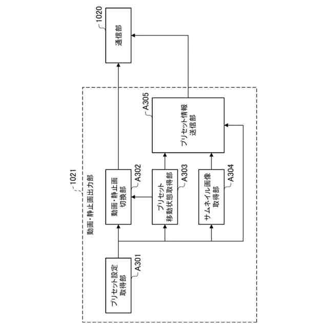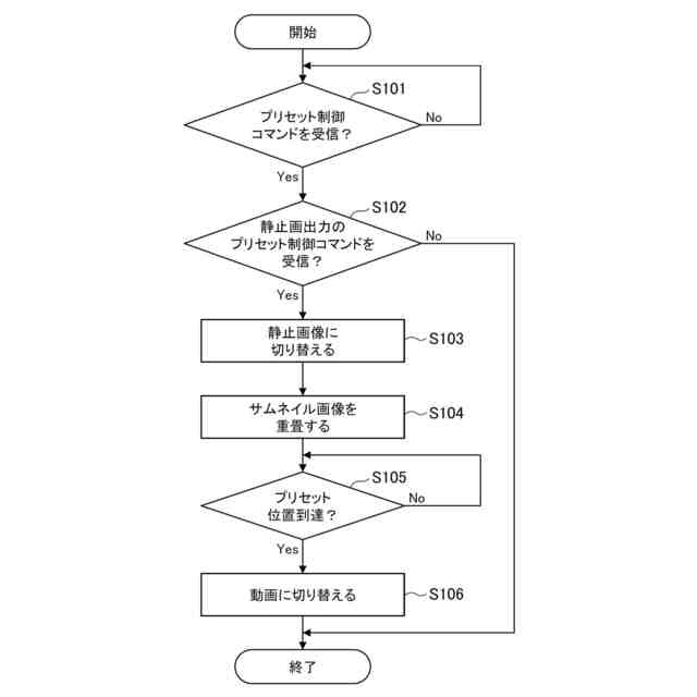 近年、動画配信市場の拡大に伴い、ネットワークを利用して遠隔制御や動画撮影が可能なカメラで、結婚式や講演会で撮影する撮影システムが増加している。そのようなカメラでは予め、特定の撮影領域に対応するパン・チルト・ズーム(以降PTZ)の各位置の組み合わせパターンを予め設定して記憶(登録)させておく。そして、この登録されたパターンのPTZ位置情報を所定操作により呼び出して設定できるようにした、プリセット機能を有するものが知られている。プリセット機能を用いてカメラに登録したプリセット画角へPTZ移動する際には移動中の映像が撮影されるが、PTZ移動速度が高速な場合など用途によっては、移動中の映像を映したくない場合がある。