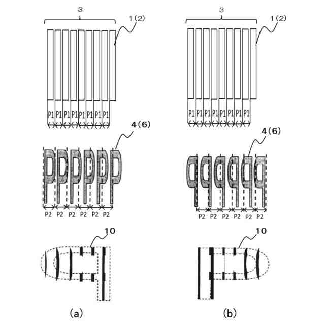 第1のピッチをP1、第2のピッチをP2としたとき、第2のピッチP2は、