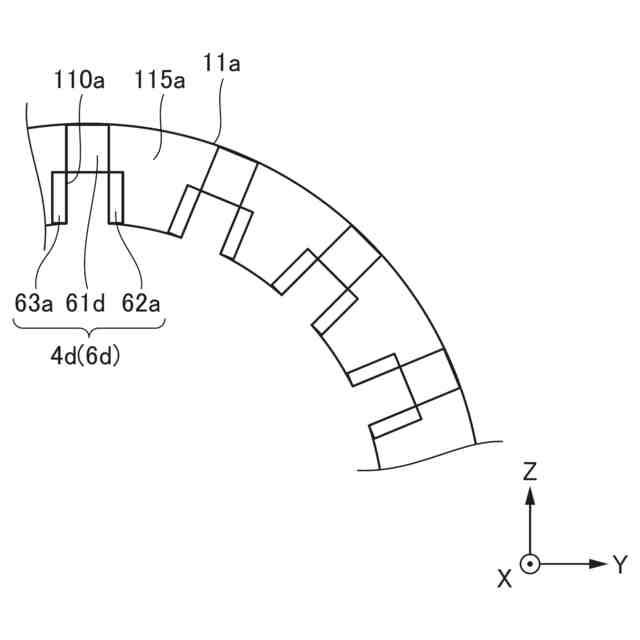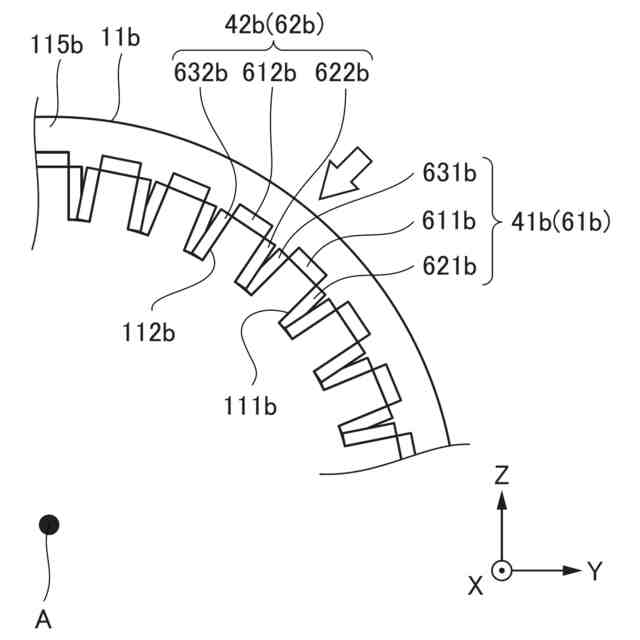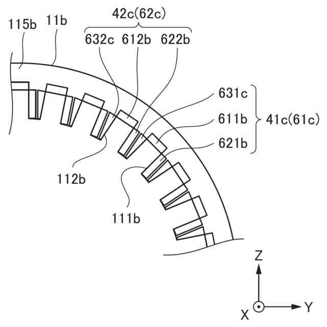 前記第一の放熱部材の前記第三放熱部と、前記第二の放熱部材の前記第二放熱部は、円周方向において重なっておらず、前記回転軸の方向において同じ高さに配置されている部分を含む、