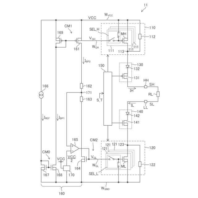 図10は、本開示の実施形態に属する第1実施例に係り、ローサイド出力回路の回路図である。