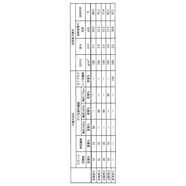 (w1:油吸着前の不織布重量、w2:油吸着後5分間放置した後の不織布重量、w3:油吸着後65分間放置した後の不織布重量)