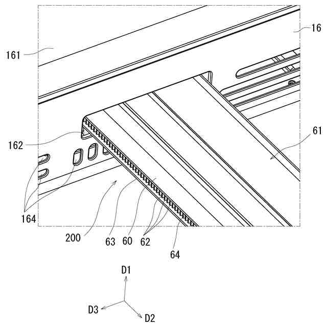 特許文献1の引出し体は、ラック歯部の歯先が突出しているため、ラック歯部の歯先が破損する虞がある。