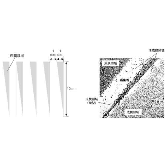 具体的には、ガラス等を材質とするカバーグラス表面上に、一定間隔の格子状に非晶質炭素膜を成膜した後、該表面に対し単一種の細胞を均一に播種し、カバーグラスごと1穴の細胞培養容器内にて一定期間細胞培養を行った。更に、該格子状の成膜領域を、異なる成膜条件由来の複数種の非晶質炭素膜によって構成することで、同一細胞培養容器内における各種炭素膜の特性の相違による接着細胞の挙動比較を可能とした(特許文献9)。