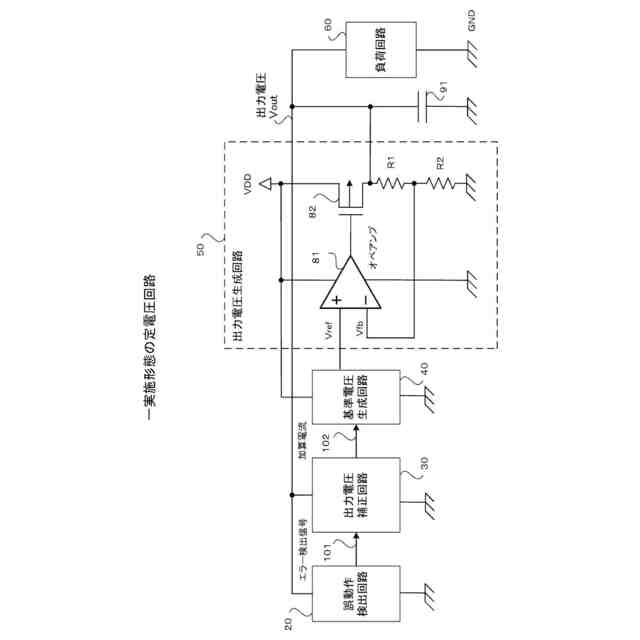 【解決手段】基準電圧生成回路40は、定電流源による定電流を半導体素子に流すことにより基準電圧Vrefを生成して出力する。出力電圧生成回路50は、生成された基準電圧Vrefに基づいて出力電圧Voutを生成して出力する。誤動作検出回路20は、負荷回路60において使用される半導体素子と同様の低電圧動作特性を有する半導体素子を用いて、出力電圧Voutが負荷回路60の動作下限電圧以下になったことを示すエラー検出信号101を生成して出力する。出力電圧補正回路30は、エラー検出信号101がアクティブとなった場合、基準電圧生成回路40の定電流に電流を加算することにより定電流の電流量を異なるタイミングにより順次増加させ、エラー検出信号101がインアクティブとなった場合、定電流への電圧の加算を中止する複数の電流加算回路を有する。
