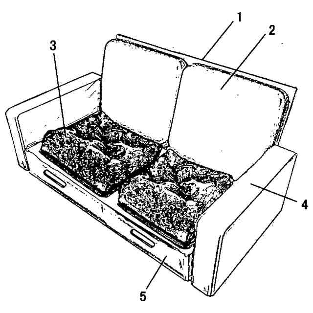 ソファーの外観を図1で示す。ソファー1は、背もたれ2、クッション3、アーム4とフレーム5から構成される。