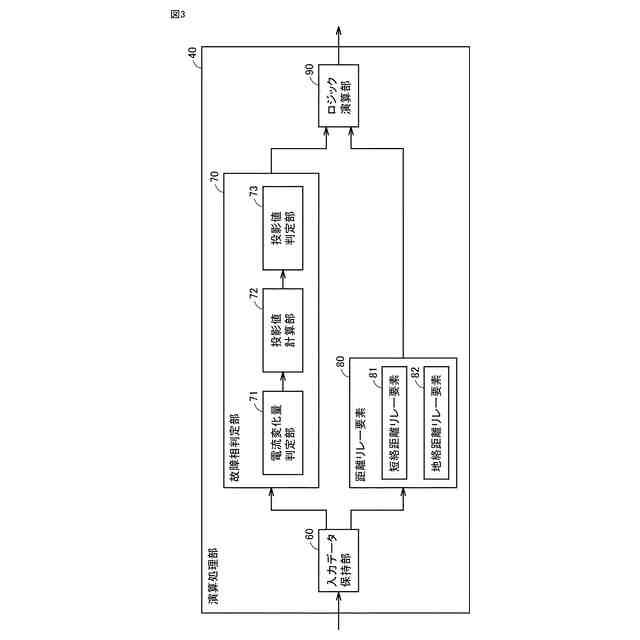 このように、故障相と同じ相の距離リレー要素は正しい判定が可能であるが、故障相と異なる相の距離リレー要素は正しい判定ができずに、たとえば、オーバーリーチ動作(すなわち、保護領域を超えた故障に対する動作)という誤動作に至る。その対策として、たとえば、故障相判定回路によって故障発生時の故障相を判定し、故障相判定回路の判定結果と距離リレー要素の動作出力との論理積を採ることで誤動作が防止される。故障相判定回路として、たとえば、次の文献に開示された回路が知られている。