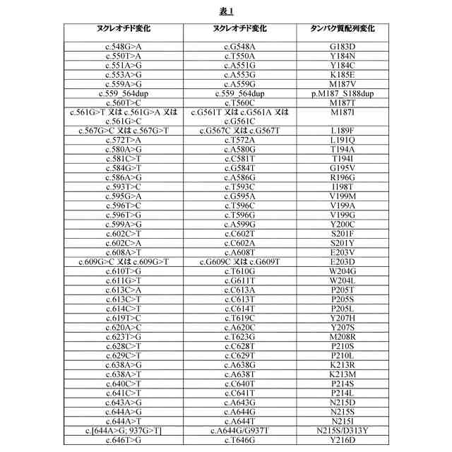 前記突然変異情報及びまた表2に前記少なくとも1つの突然変異の表現があると同定する問い合わせ結果を受信すること