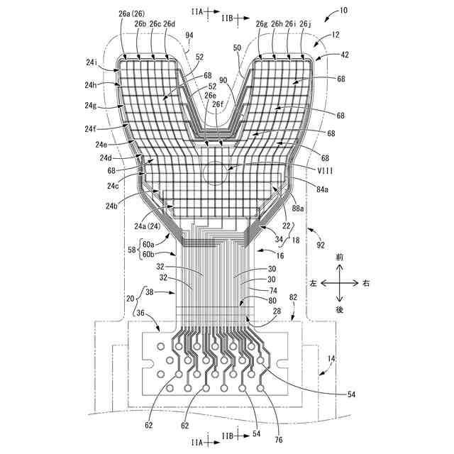 【解決手段】歯の噛み合わせによる咬合力が外部から及ぼされることに伴って弾性的に形状変化する検出部68を複数備えており、各検出部68には第一電極24と第二電極26が対向配置されて圧力が電気的に検出されるようになっている咬合力センサシート12であって、複数の検出部68の少なくとも一つにおいて、第一電極24及び第二電極26の少なくとも一方には、第一電極24と第二電極26が対向する内面側と反対の外面側に位置して、検出部68の局所的変形を抑える補強材84が配されている。