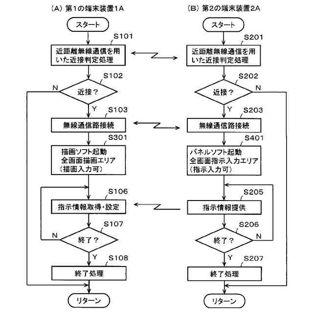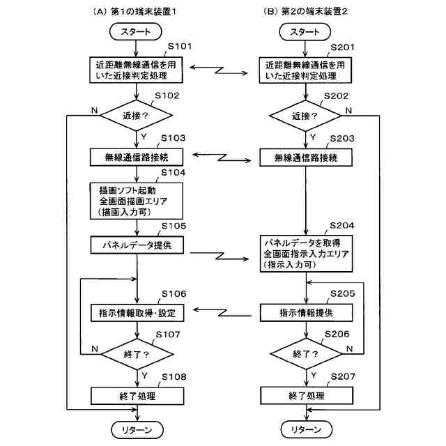 第2の実施の形態の第1の端末装置で行われる処理と第2の端末装置で行われる処理につい説明するためのフローチャートである。