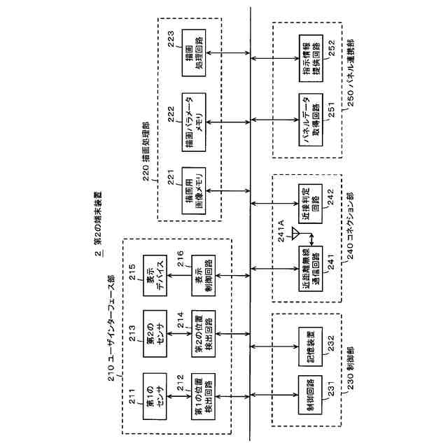 前記第1の端末装置はさらに前記第1の表示デバイスの表示画面に対応する第1の位置検出センサを備え、