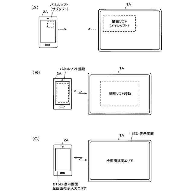 比較的に大きな表示画面の表示デバイスを有するタブレットPCであっても、当該装置の表示画面に描画エリアと指示入力エリアとの両方を設けると、描画エリアは小さくならざるを得ない。近年においては、コンピュータの性能向上に伴い、表示画面のサイズが8インチ~11インチ程度の小型の表示デバイスを備えた小型のタブレットPCで描画ソフトウェアを実行し、細かな描画を行う場合も多い。