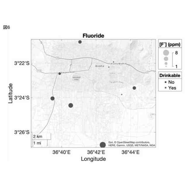 アフリカ東部にはアルカリ火山活動によって、高濃度のフッ素を含む火山岩類が分布している。特にタンザニアでは、その高濃度のフッ素を含む地中を通過してきた地下水や河川水が淡水水資源として使われている。このような淡水資源には高濃度のフッ素が含まれる。