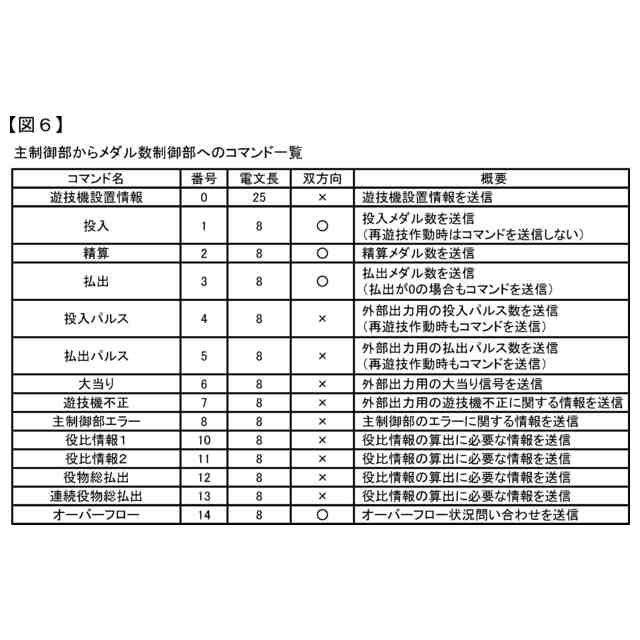 主制御基板と枠制御基板との間で送受信されるコマンドの一覧を示す図で ある。