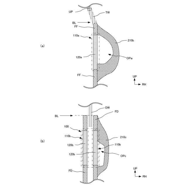 (a)は図1に示された矢印方向から見たB-B線に沿う断面図であり、(b)は図1に示された矢印方向から見たC-C線に沿う断面図である。