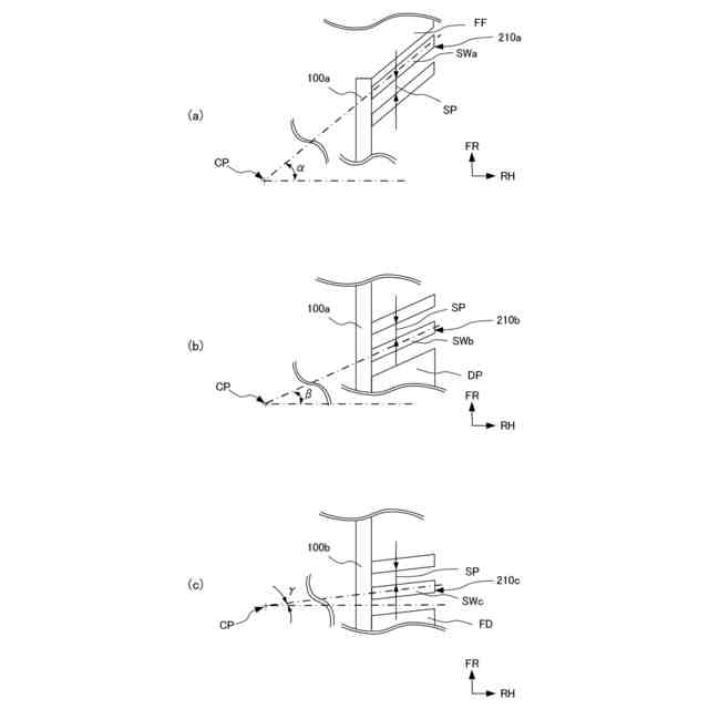 本発明の第1の実施形態に係る車体構造におけるフロントフェンダー部からリアフェンダー部に向かう包絡面を示した概要図である。