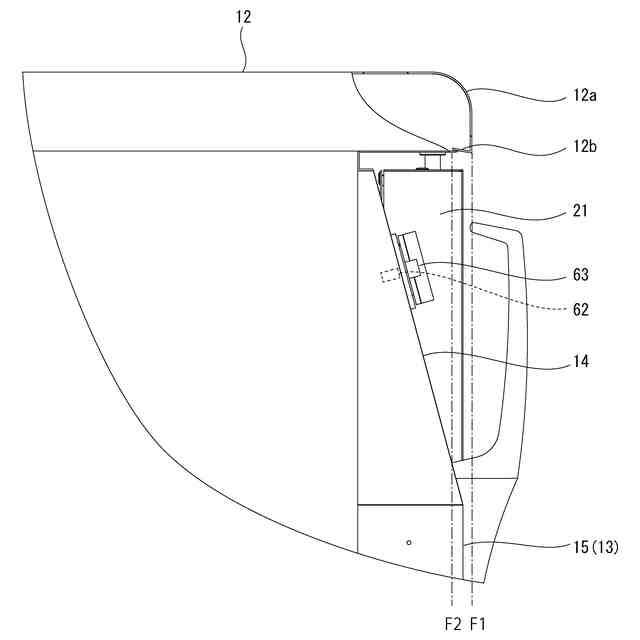 特許文献1の横型冷蔵庫の天板は上側で調理等の水を使用する作業をする作業台として利用可能であるため、USBのコネクタを横型冷蔵庫の天板に配置すると被水する(水がかかる)おそれがあって好ましくない。これに対し、USBのコネクタを横型冷蔵庫でハウジングの前面上部に配置したときには、USBのコネクタを使いやすい位置に配置できるとともに、USBのコネクタに天板の上側で調理等の水を使用する作業をするときの水を被水させにくくすることができる。しかし、横型冷蔵庫の天板の上面に多量の水を流すようにしたときに、水が天板の上面から前側に流れ落ち、前面上部に設けたUSBのコネクタが被水するおそれがある。本発明は、ハウジングの天板の上側を作業台として利用可能な天板付き機器において、ハウジングの前面上部に信号端子部を配置しても水がかかりにくくすることを目的とする。