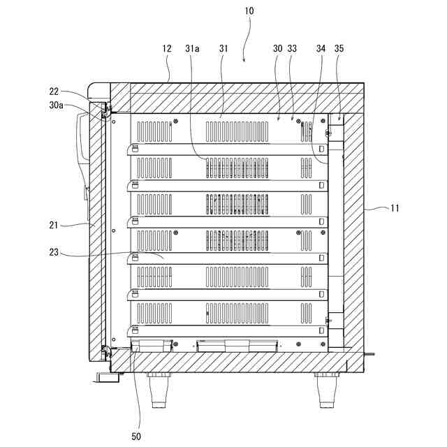 本発明の天板付き機器の実施形態である再加熱器の正面図である。
