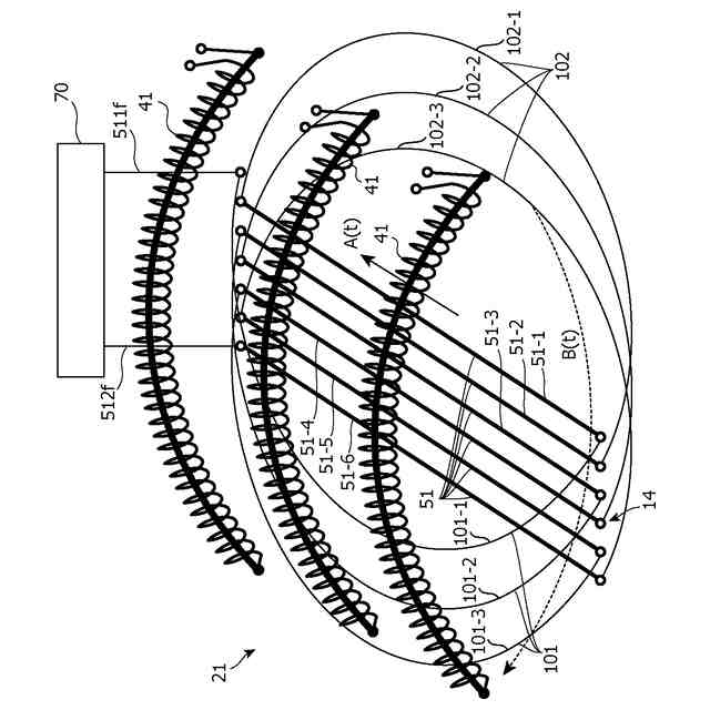 図17は、実施の形態9における電磁気及びベクトルポテンシャル発生感受装置21のソレノイドコイル41の一例を示す図である。